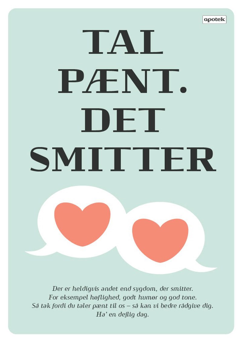 Men vi vil gerne minde om, at selv om medarbejderne har arbejdstøjet på, er de også mennesker. Vi skal passe på hinanden og tale ordentligt - også på apoteket. Punktum.